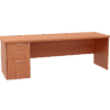 • product_details: Harvard Cherry Melamine, Harvard Cherry Edging. 32mm Top 1 x 16mm Modesty Panel 2 x 16mm Panel Legs 2 Drawer Pedesal – central lock. Silver Handles