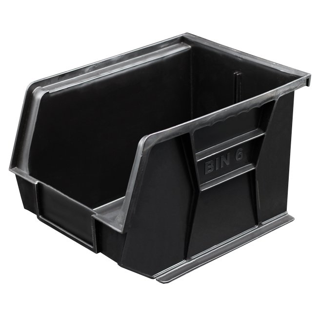 - Create order on the warehouse or workshop shelves with these affordable and durable storage bins.