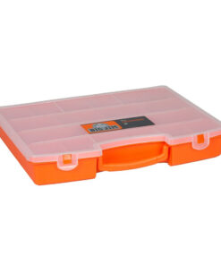 Made From Polypropylene Material *Orange Base & Clear Lid *17 Compartments *2 Secure Clips Built In Lid *Comfortable Swing Carry Handle *Includes Excellent Ribbing On Bottom Of Unit