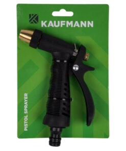 The Kaufmann Metal Pistol Sprayer is a versatile tool designed for various watering and cleaning tasks. It features an adjustable nozzle that allows you to switch seamlessly between a fine mist for gentle watering and a solid jet spray for more powerful cleaning. Made from durable metal, this sprayer is built to withstand regular use while maintaining its performance. The ergonomic handle provides a comfortable grip, reducing fatigue during extended use. This sprayer is ideal for garden care, car washing, and general outdoor cleaning. Easy to connect to standard garden hoses, it’s a must-have for both gardening enthusiasts and professionals alike. Enjoy efficient watering and cleaning with the Kaufmann Metal Pistol Sprayer.
