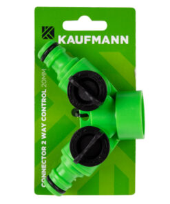 Kaufmann 20mm connector 2 way control: This 20mm coupling fits garden taps, allowing you to connect two garden hoses. Use both hoses simultaneously or share the water supply, making it perfect for efficient watering and garden management.