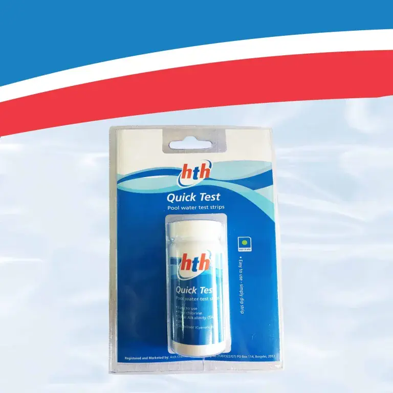 Easy to use pool water test strips – simply dip the strip in your pool’s water and compare to the colour blocks on the container.