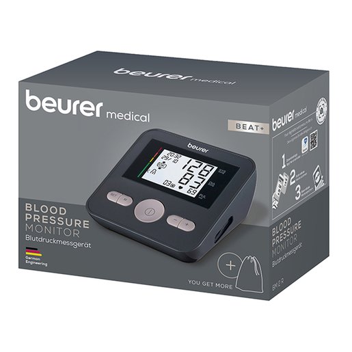 Fully automatic upper arm measurement with clear display. Detects arrhythmia, stores 30 readings for 4 users, averages results. USB-C power option. Includes 4x AA batteries, free storage bag.