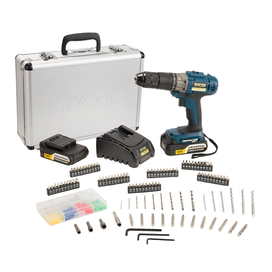 The Ryobi Cordless Impact Driver Drill Kit 18V is a lightweight tool that holds its charge well and delivers strong performance through its heavy duty motor. It includes two 1500mAh batteries, a 2 speed gearbox with impact function, variable speed control, and 21 torque settings plus drill and impact modes. The kit comes in a sturdy aluminum case with 160 accessories, and features an LED work light and belt clip for convenience.