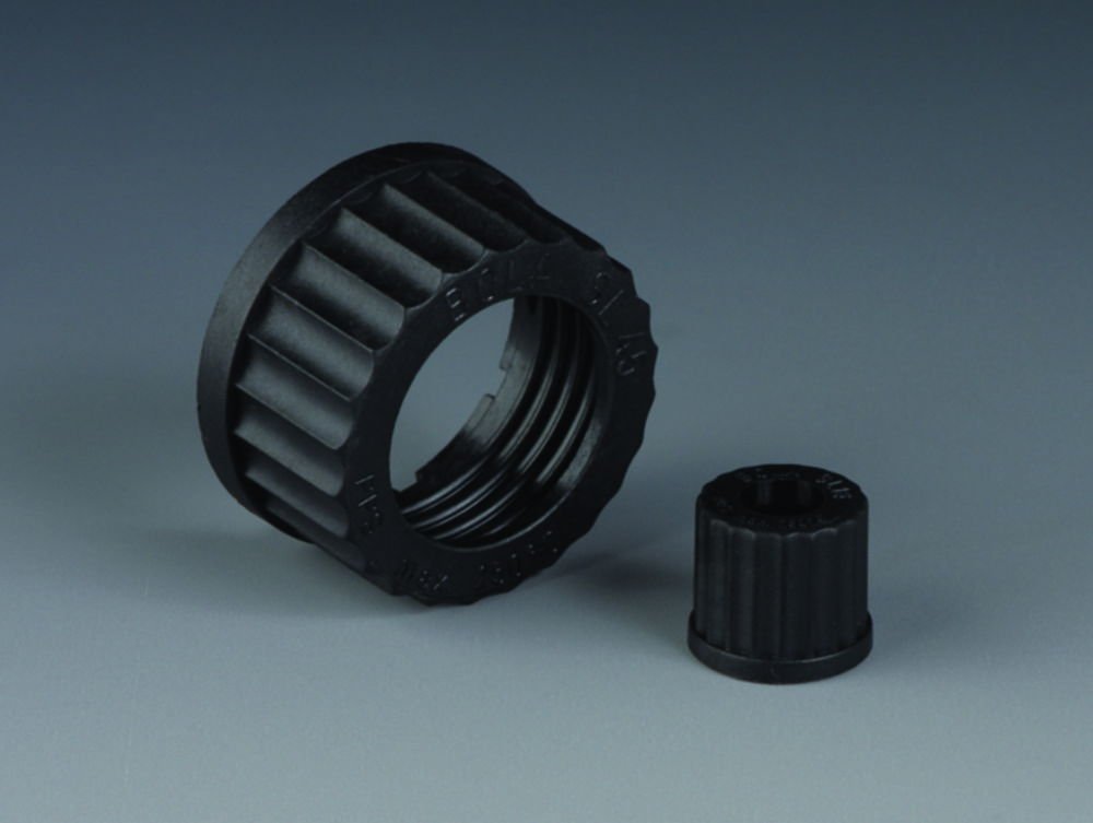 The Bohlender Screwhead Connection Caps GL 18 High Temp are designed to withstand extreme temperatures up to 250��C. Made from PPS (polyphenylene sulphide) reinforced with glassfibre, these caps offer excellent mechanical strength and durability. Ideal for high-temperature laboratory applications, they feature a contoured grip for secure closure and easy opening.