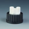 The Bohlender Multiple Distributor for Bottles, PPFE, 2xGL14 is designed for laboratories requiring efficient liquid distribution from GL45 threaded bottles. Constructed from high-quality PPFE (Polyphenylene Sulfide/Fluoropolymer blend), this distributor ensures excellent chemical resistance and durability. It features two GL14 threaded necks, allowing for simultaneous connection to multiple systems, such as liquid sources or pressure/vacuum systems with tubing up to 8.5 mm in diameter.