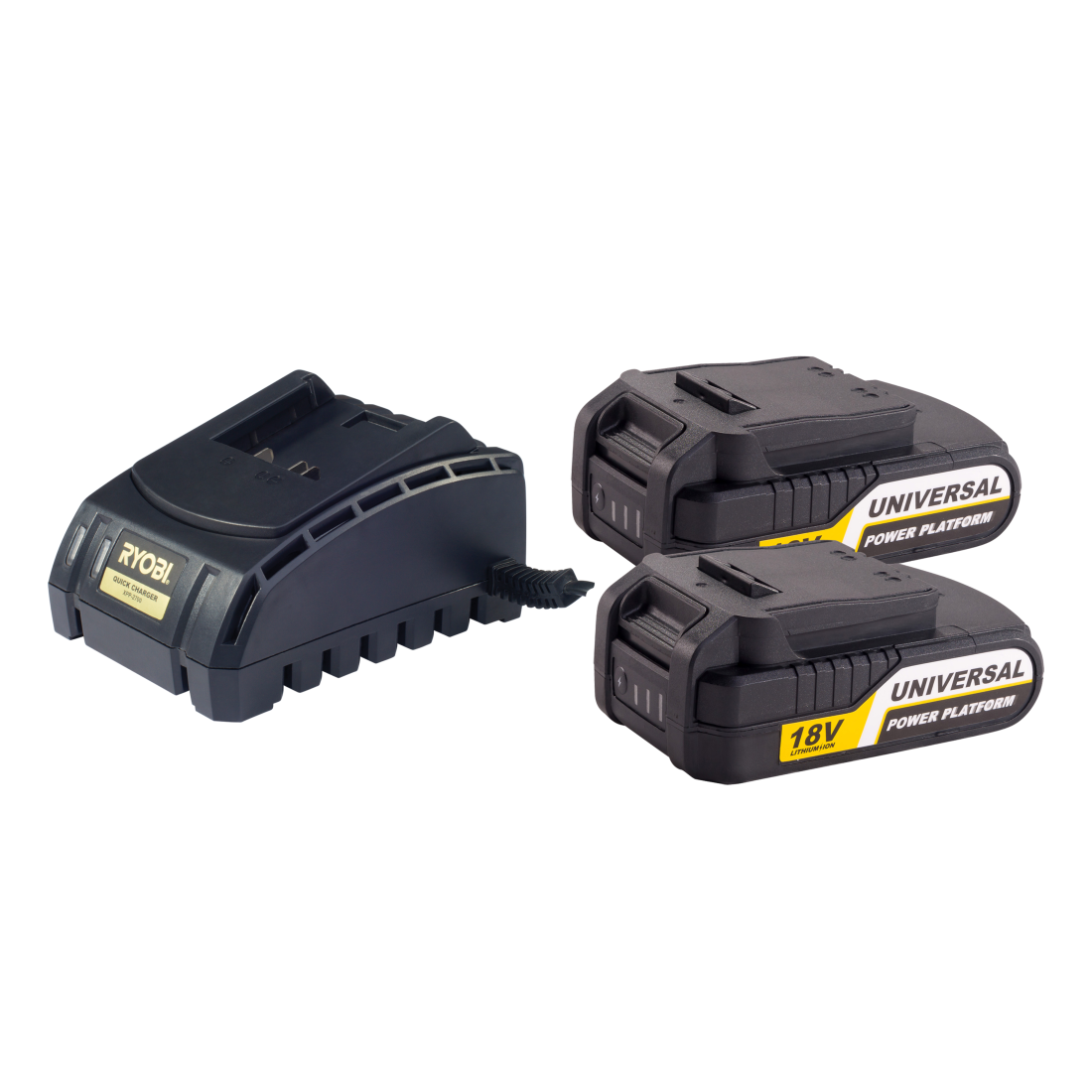 The 18V Batteries and Charger Kit (XB2000 X2, XPP2700) provides a total power capacity of 8000mAh with two 4000mAh batteries. It suits all RYOBI universal power platform tools, garden, and cleaning equipment. The dual charger recharges both batteries in 125 minutes or a single battery in 90 minutes when connected to a RYOBI inverter generator, portable power station, or AC outlet.