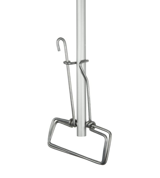Holder for fan mop heads. It comes with a spring clip and aluminium handle