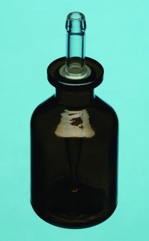 Bohemia Cristal Dropping Bottle 50 mL, Amber, NS Pipette, Boro 3.3 is designed for accurate dropwise dispensing of liquids in laboratory applications. Made from premium borosilicate glass 3.3, it provides outstanding chemical resistance and thermal durability. The amber glass protects light-sensitive reagents, while the interchangeable ground joint and transparent pipette ensure precision and leak-free operation. Ideal for small-volume reagent handling in analytical, chemical, and research laboratories.