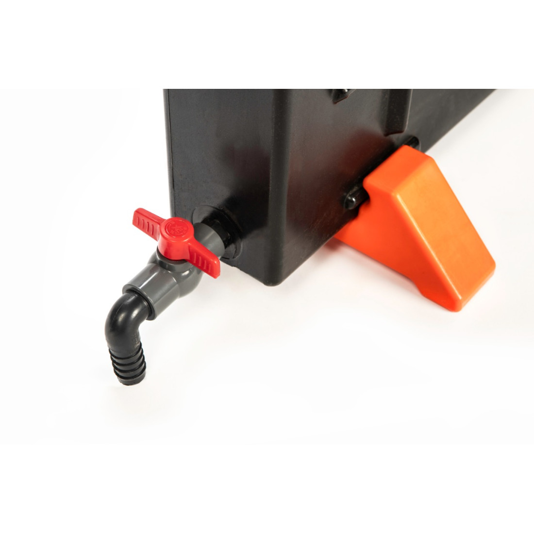 Drain the dirty water after cleaning your braai grid, by opening the drain valve.