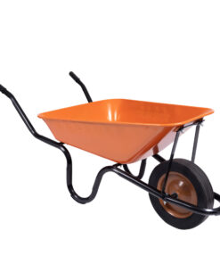 This wheelbarrow is designed for general construction work.**Features:**0.8mm steel tray.*No bolts and nuts through the tray.*Steel shaft and bushes for wheel assembly.*65L load volume.*80Kg load capacity.