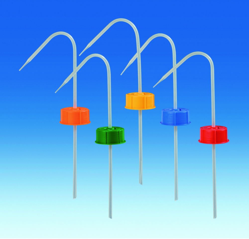 The VITLAB Vent Cap with Squirt Pipe is designed for 500 ml laboratory bottles with a GL 45 neck. Made from durable polypropylene (PP) in blue, this vent cap minimizes leakage and dripping, preventing static overpressure buildup. It features a precise spray jet and optimized medium backflow, enhancing dispensing accuracy and efficiency. Ideal for laboratory applications requiring controlled liquid dispensing.