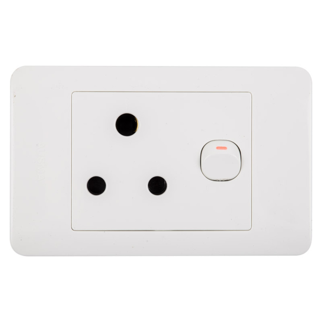 Flush Mount Three Pin Wall Plug With A Switch To Connect Or Disconnect A Circuit For Appliances.