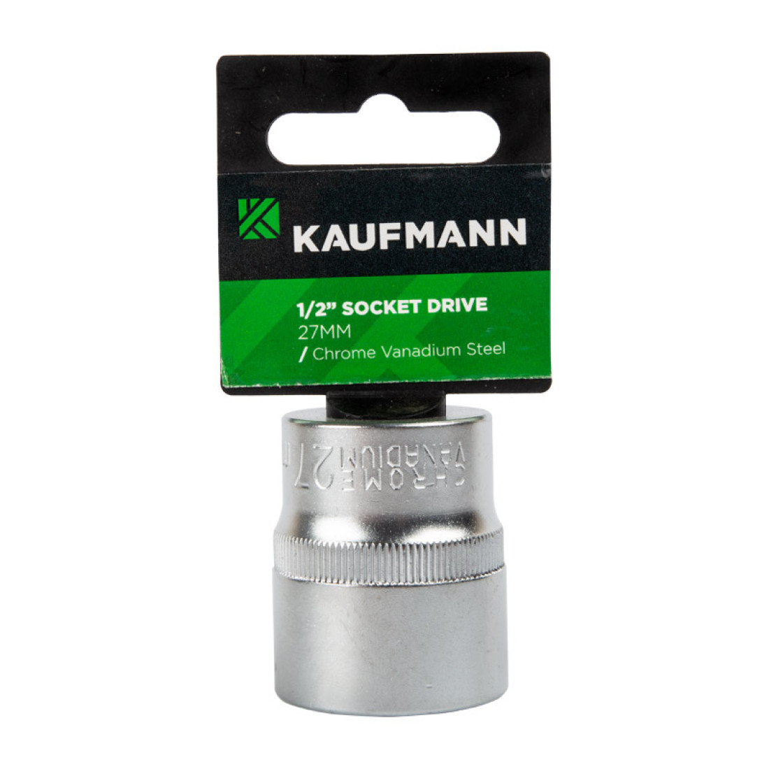 The Kaufmann 27mm Socket 1/2 Inch Drive is engineered for precision and durability, making it an essential tool for both professional mechanics and DIY enthusiasts. This socket is designed to work seamlessly with a ratchet drive, enabling effortless tightening or loosening of nuts.** Key Features:** High-Quality Material: Constructed from chrome vanadium steel for strength and longevity, ensuring it withstands heavy use without compromising performance.* Flank Drive Design: The unique contact drive reduces the risk of rounding fasteners, allowing for a secure grip and efficient torque application.* Versatile Use: Ideal for a variety of applications, including automotive, industrial, and home repairs, making it a valuable addition to any toolbox.* Reliable Performance: Delivers consistent results in both professional settings and DIY projects.* Enhanced Grip: The design provides better engagement with fasteners, minimising slip and wear.* Ease of Use: Facilitates quick adjustments, saving time and effort during repairs.** The Kaufmann 1/2 Inch Drive Socket 27mm is the perfect choice for those seeking a reliable and durable tool to tackle a wide range of tasks. Its combination of quality materials and thoughtful design addresses the needs of users who value both performance and longevity in their tools.