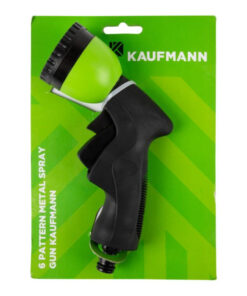 The Kaufmann Metal Pistol Sprayer is an adjustable hose sprayer designed for versatility in gardening tasks. It features six distinct spray patterns, including mist, shower, jet, and more, allowing you to customize your watering experience based on your needs. The durable metal construction ensures long-lasting use, while the ergonomic handle provides a comfortable grip during extended use. This sprayer is suitable for watering plants, washing cars, and cleaning outdoor spaces. The easy-to-use trigger mechanism allows for effortless spraying, and you can adjust the flow rate with ease. Whether you’re tending to your garden or performing general cleaning, this sprayer offers reliability and efficiency.