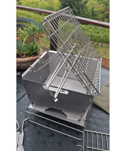 Our Flat Pack Deluxe includes 4 wall panels (1.2mm 3CR12), the baseplate (1.5mm 3CR12), double grid, ribstand, our three-in-one pan/stand/lid, a smoker grid, tongs and a ripstop bag.