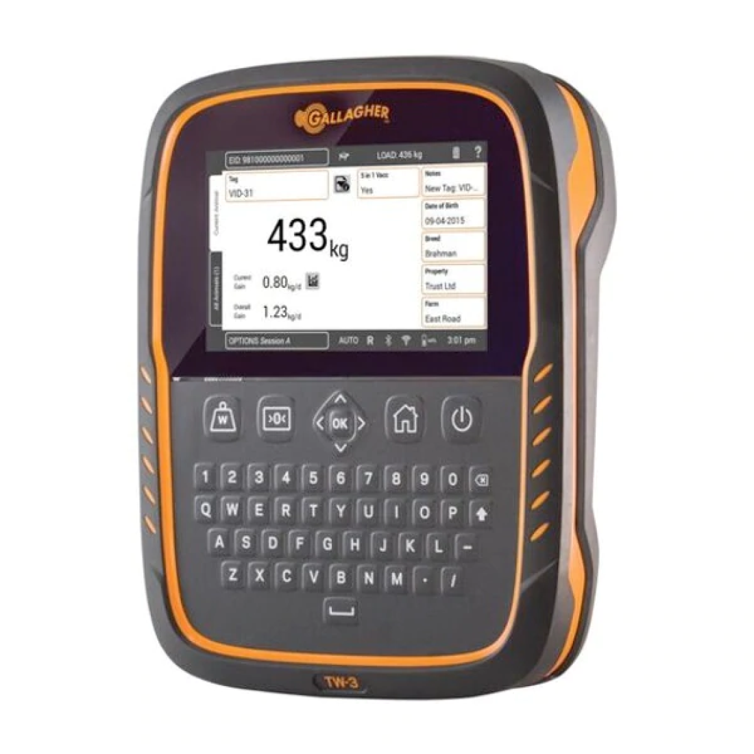Gallagher’s TW-3 weigh scale and data collector display reliable, accurate weights quickly.View, manage and analyze your animal data on an easy-to-use, fully intuitive touch screen. The scale also includes a full QWERTY keyboard.