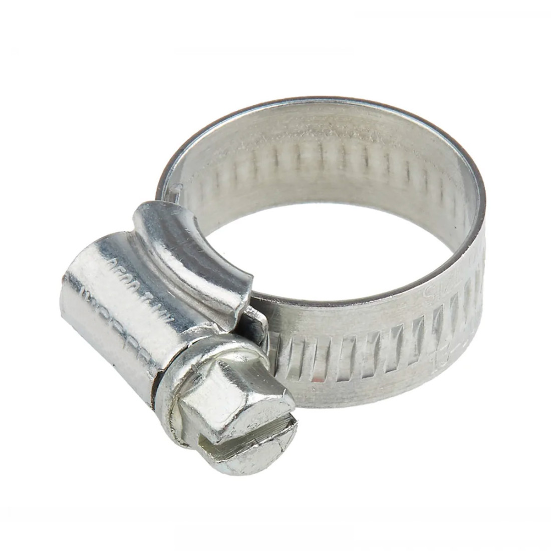 Consist of 400 series stainless steel band. Zinc electroplated steel housing and zinc electroplated case hardened screw. The screw thread fully penetrates the perforated band; increasing the strength. 8mm slotted hex screw is standard.