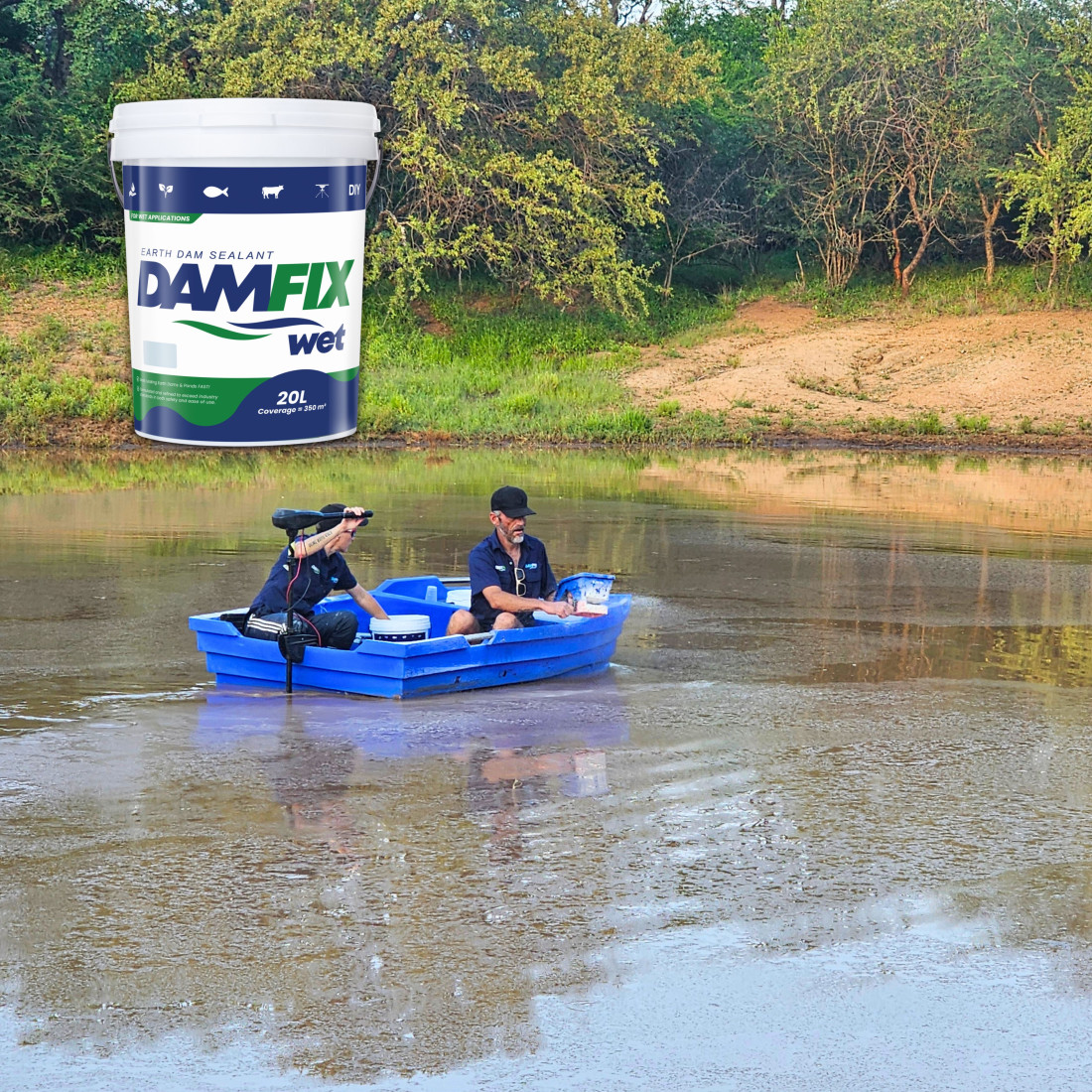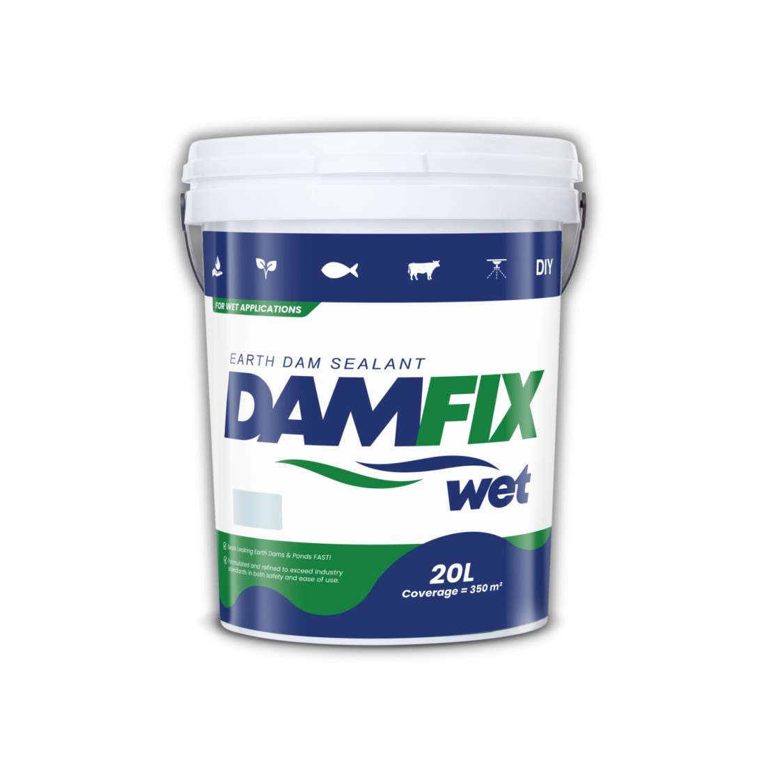 DAMFIX Wet is a dam sealer specifically developed for soil-based dams, also known as earth dams. It provides a fast, effective solution for sealing leaks and porous zones in dams, without the need to drain the water. This makes it an ideal choice for anyone looking to preserve and protect valuable water resources in agricultural, commercial, or residential settings. DAMFIX Wet a granular polymer blend, applied directly onto the surface of a filled dam. Once applied, it swells and sinks to the dam floor, where it begins to bond with the soil. This soil-polymer mesh drawn into leaking areas works to seal cracks, porous sections, and seepage paths. The polymer swells up to four hundred times its original volume, forming a flexible composite mesh with the soil bed. This functions as a water-retaining barrier capable of handling hydraulic pressures within the dam wall or floor. Manufactured in South Africa, DAMFIX Wet is a proprietary blend of natural and synthetic polymers designed to work with a wide variety of soil types. Non-toxic and environmentally safe, it is suitable for use in dams that support livestock, wildlife, or irrigation. The unique formulation has been independently assessed as safe for animals and aquatic life, safe for hooves, and poses no risk to irrigation systems or plant growth. DAMFIX is easy to apply, requires no specialised tools or draining of the dam, which will end the need for heavy earthmoving equipment or prolonged downtime. Ideal for old leaking dams or to reinforce a new dam, DAMFIX Wet offers a cost-effective solution that works beneath the surface, where the problem begins.