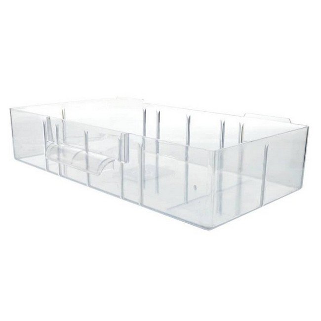 Experience premium quality with this robust parts organiser drawer crafted from impact?resistant transparent polypropylene, designed to bring order, efficiency and durability to busy workshops, maintenance stores and production lines. The natural finish and clear construction allow contents to be identified at a glance even when the drawer is closed, cutting search times and reducing picking errors that cost labour and slow operations. Sized to fit standard cabinet systems at 280 x 140 x 59 mm, the single?drawer format offers a compact but capacious option for storing fasteners, fittings, small components and consumables while the discreet rear lip secures the unit in place and permits the drawer to be opened fully without risk of it falling out, so full access is delivered safely and reliably. The drawer accepts custom partitions to subdivide internal space, enabling bespoke organisation of mixed items and preventing cross?contamination or jumbled assortments, which simplifies stock rotation and ensures that frequently used parts remain immediately reachable. Constructed to withstand regular handling, the polypropylene composition resists impact and maintains structural integrity under repeated opening, stacking and movement, so the product sustains long service life in demanding environments. Its neutral appearance integrates seamlessly into both industrial and commercial settings while supporting modular storage strategies where multiple drawers are combined to create scalable systems that match evolving inventory needs. By enabling clear visibility, secure retention and flexible compartmentalisation, the organiser reduces downtime caused by misplaced items, lowers the likelihood of unnecessary reorders and improves workplace tidiness, contributing to safer, more productive operations. This drawer represents a practical, cost?effective investment for facilities seeking to professionalise their small parts management and streamline daily workflows, delivering immediate improvements in accessibility and control that reward teams with time savings, fewer errors and a more orderly working environment.