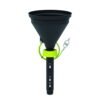 The Bohlender b.safe Funnel 180 S 60 in black offers a high-safety solution for laboratory liquid waste handling. Made from static‑dissipative PE‑EX, this Ø 180 mm funnel includes an integrated level indicator for monitoring fill levels in opaque containers. It also features a removable sieve to retain solids, a splash guard to prevent spills, a freely rotating cap for secure mounting, and a 1.5 m grounding cable to safely dissipate static charges.
