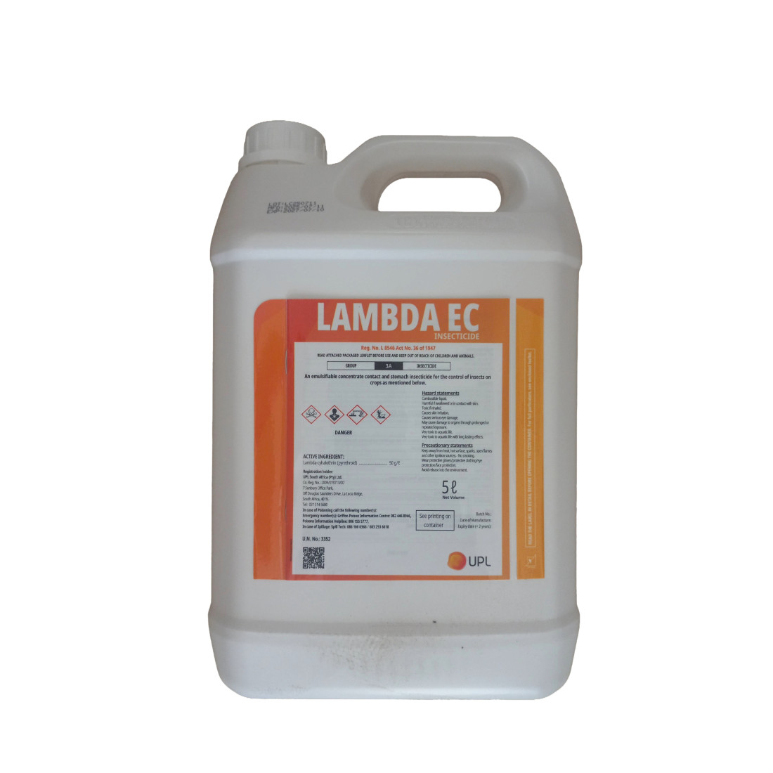 LAMBDA EC Reg. No.: L8546 Act /Wet No. 36/1947 READ ATTACHED PACKAGED LEAFLET BEFORE USE AND KEEP OUT OF REACH OF CHILDREN AND ANIMALS IRAC INSECTICIDE GROUP CODE: 3 IRAC INSEKDODERGROEP KODE: An emulsifiable concentrate contact and stomach insecticide for the control of insects on crops as mentioned below.