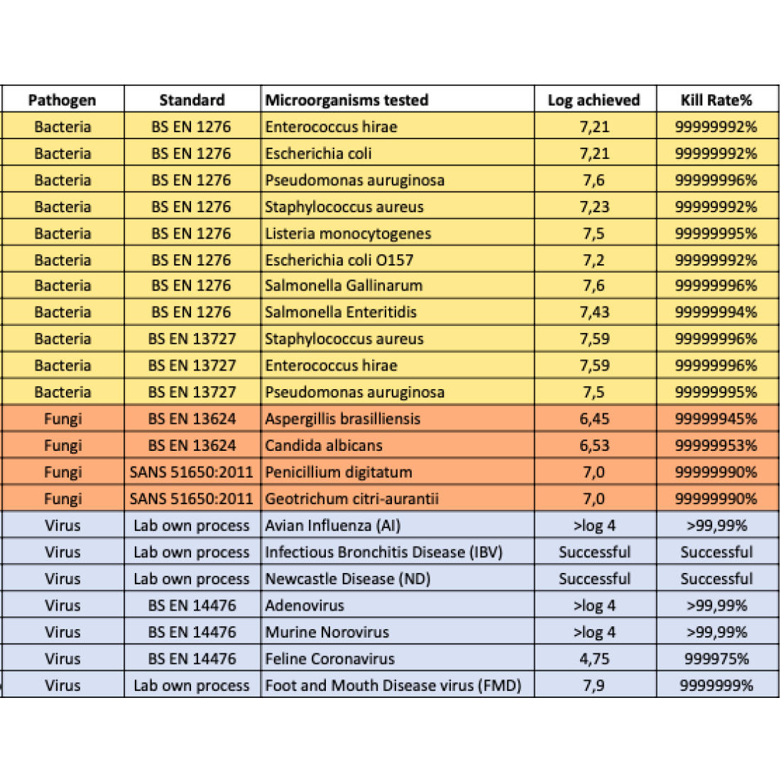 ADI kills 99.99999% of harmful pathogens in 30sec (Log 7).