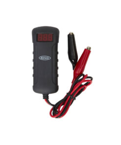Voltmeter with crocodile clips. Takes readings directly from vehicle battery. Suitable for 12V and 24V vehicles. The LED screen shows battery voltage, with LED indicators to showing if the voltage is high, medium or low. 90cm long cable.