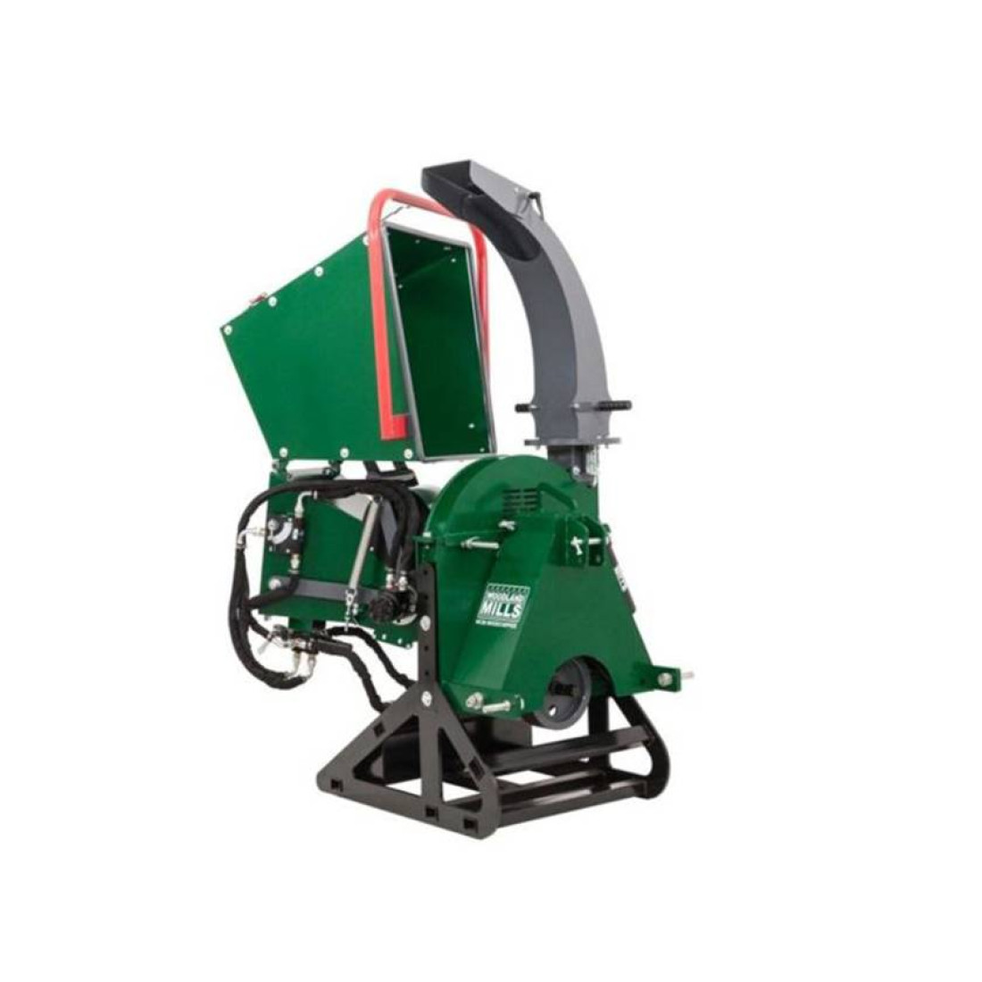 The oversized 23? Ã 27? hopper funnels material into a heavy-duty 8.25? hydraulic infeed roller, powered by a fully self-contained hydraulic system. No tractor hydraulics required. Feed direction and feed speed are completely adjustable, allowing smooth handling of crooked, multi-limbed branches without pre-cutting.