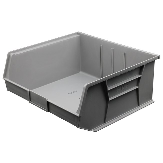 - Create order on the warehouse or workshop shelves with these affordable and durable storage bins.