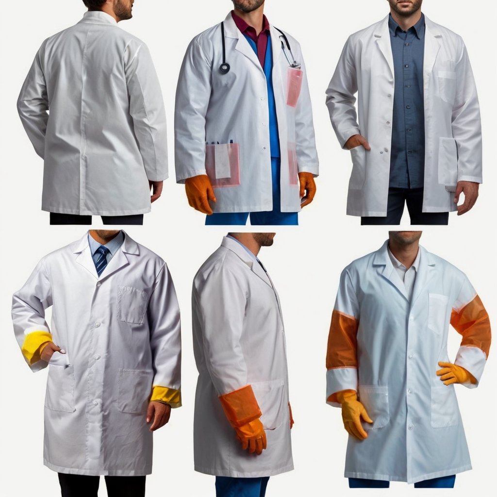Uses: Commonly used in medical, scientific, and academic environments. They provide a protective barrier against spills, splashes, and minor chemical exposure, maintaining hygiene and preventing contamination.