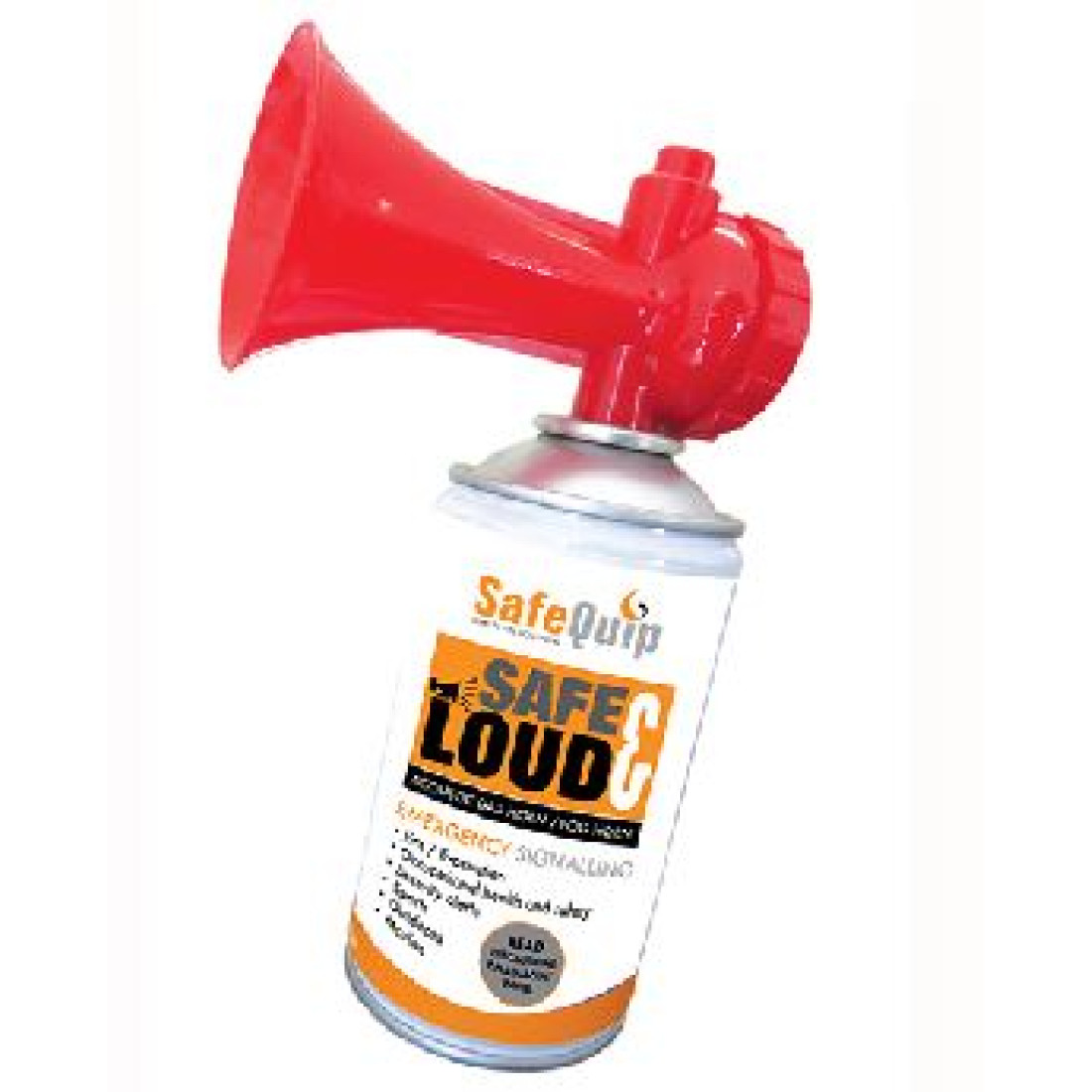 The Safe & Loud is lightweight & portable and can easily be carried by hand or in a pouch attached to a belt or attached to safety equipment. This alarm does not sound like other electronic alarms and is very easily identifiable in cases of emergency. There is up to 80 short blasts in each canister and can be heard up to ¼ kilometer in good weather conditions.