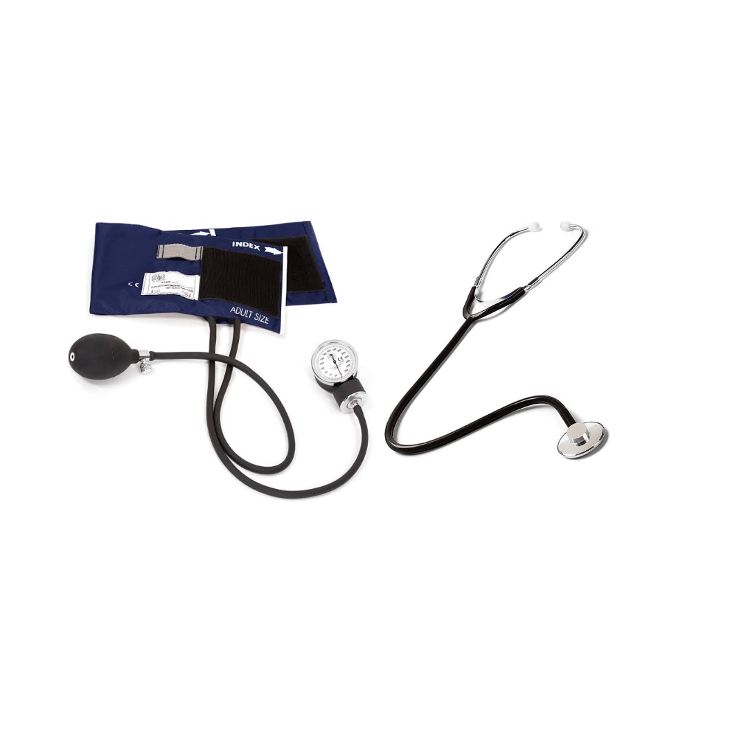 Aneroid blood pressure monitor + Single head stethoscope.