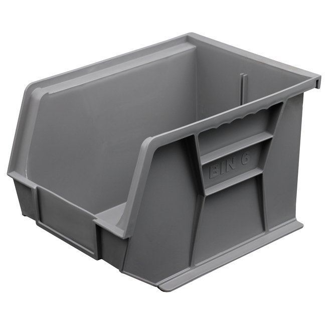 - Create order on the warehouse or workshop shelves with these affordable and durable storage bins.