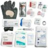 Types of bandages include roller, triangular, four-tailed, many-tailed (Scultetus), quadrangular, elastic (elastic knit, rubber, synthetic, or combinations of these), adhesive, elastic adhesive, newer cohesive bandages under various proprietary names, impregnated bandages (plaster of Paris, waterglass [silica], starch)