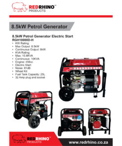 Red Rhino 8kW H-Type Gasoline Generator (Electric Start) with Wheel kit and Hour Meter