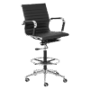 Full Mechanism: Torsion knee tilt mechanism Base: Chrome Spider Base Chrome footring with black Draughtsman Gas Arms:Chrome Arms with leather cover Colour and type fabric: Black Bonded Weight limit; 135 KG Lead time on some products are 14-21 business days.