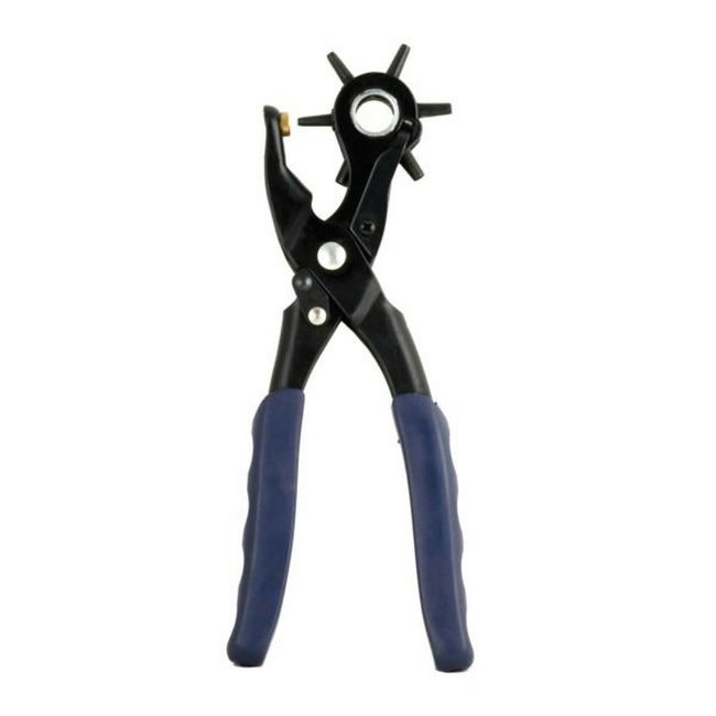 The punch plier is commonly used for punching round holes in leather, belts, plastic, rubber, canvas, fabric, cardboard, saddles, and similar materials.