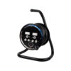 Good Quality 15M Extension Reel With 2 X 3 Pin Plugs 1 X Schuko Euro On/Off Switch And Built In Surge Protection. Metal Frame For Durability.
