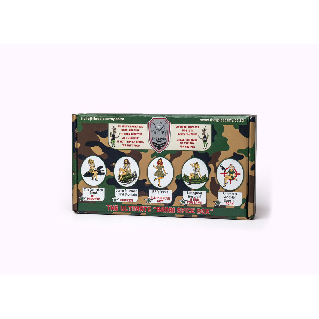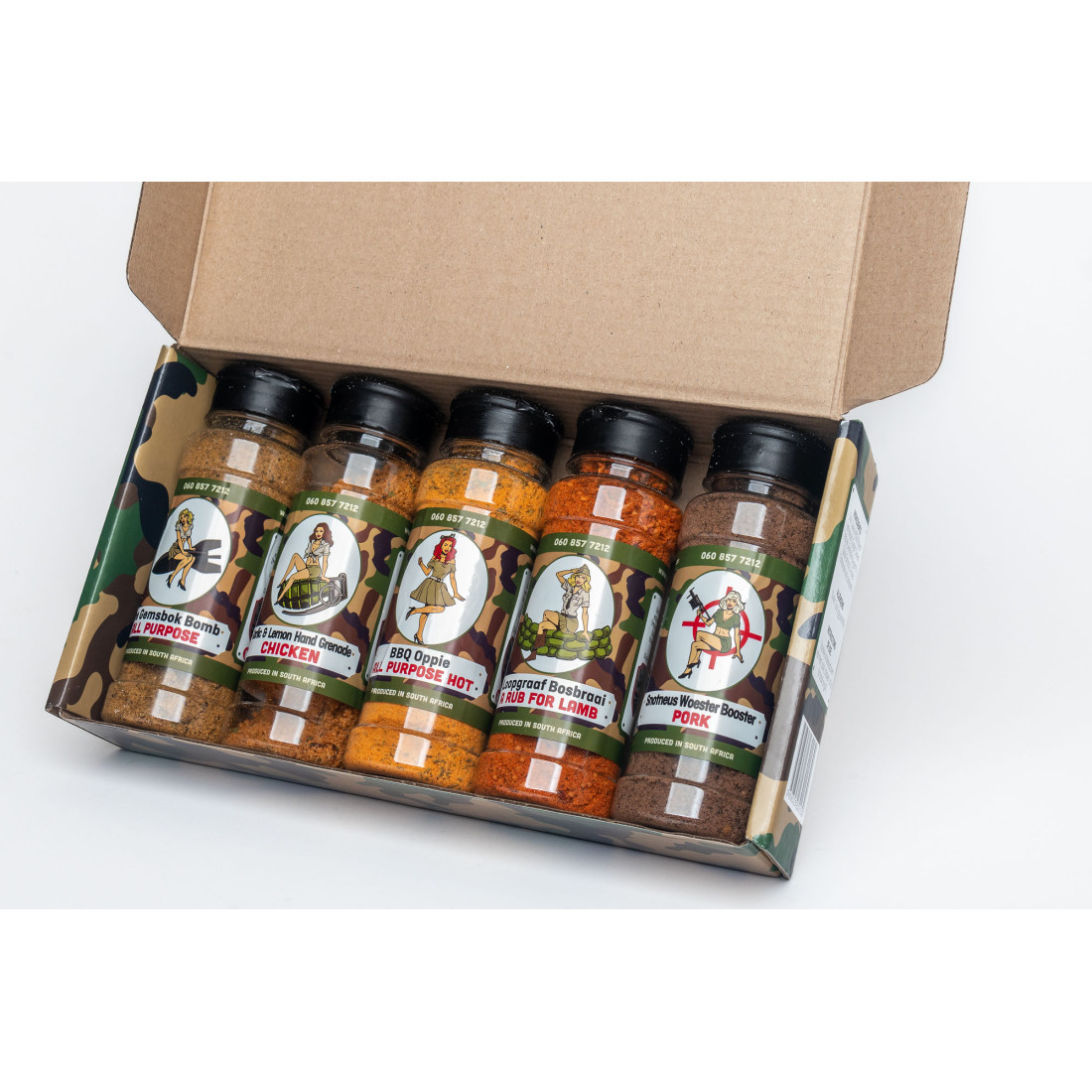 The Ultimate Braai Spice Gift BoxA Unique Gift Box with 5 x 180g shaker that will make any Master Braaier proud to have at his braai.