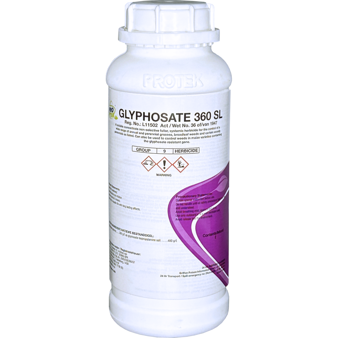 A soluble concentrate non-selective foliar, systemic herbicide for the control of a wide range of annual and perennial grasses, broadleaf weeds and certain woody perennials as listed. Can also be used to control weeds in maize varieties containing the glyphosate resistant gene.