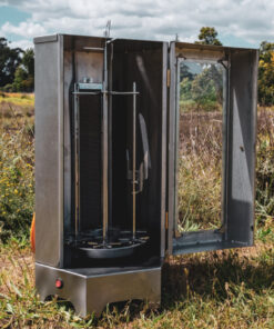 Use our unique and mobile vertical spit for swarmas, espatades or a normal spit. Connects to a gas cylinder.