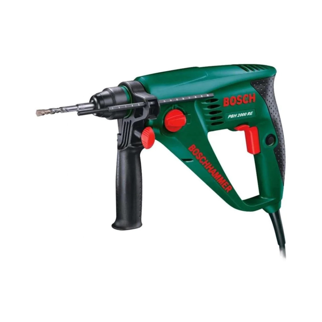 The Bosch PBH 2000 RE is a lightweight and powerful tool that allows for effortless drilling, hammering and chiseling. TECHNICAL DATA550 W motor and pneumatic hammer mechanism with 1.7 j for general applicationsSDS plus chuck for fast, keyless accessory changesHammer and chisel in concrete and masonry or drill in tile, wood, and metalChisel function with Vario Lock providing various selectable chisel positionsUp to 20/30/13 mm in concrete/wood/metal, weighing only 2.2 kg
