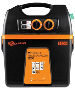 The B200 is a versatile Energizer – ideal for providing portable power for short term animal control but also as for permanent installations, in remote areas with no mains power.Powers: 5 kilometres / 10 hectaresContains: 1.45 Joules of Stored EnergySuitable: For all types of animal fencingEnergy (stored) – 1.45JoulesEnergy (output) – 1.1JoulesMultiwire Distance (Gallagher Recommendation) – 5kmMultiwire Distance (ideal conditions) – 20kmOutdoors Suitable – YesProduct Height – 380mmProduct Width – 320mmProduct Depth – 210mmProduct Weight – 3.7kgProperty Size – 10 hectaresWatts – 1.44WWarranty – 3YearPower Source – Battery