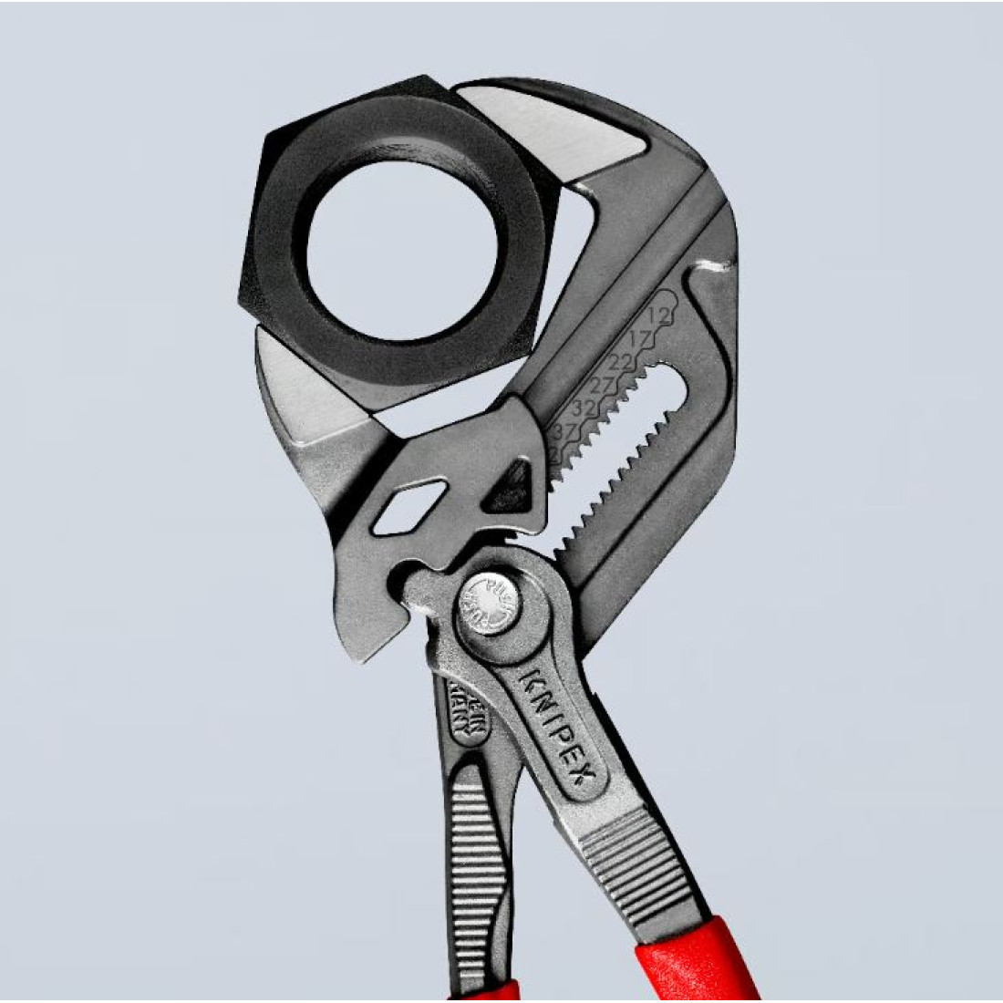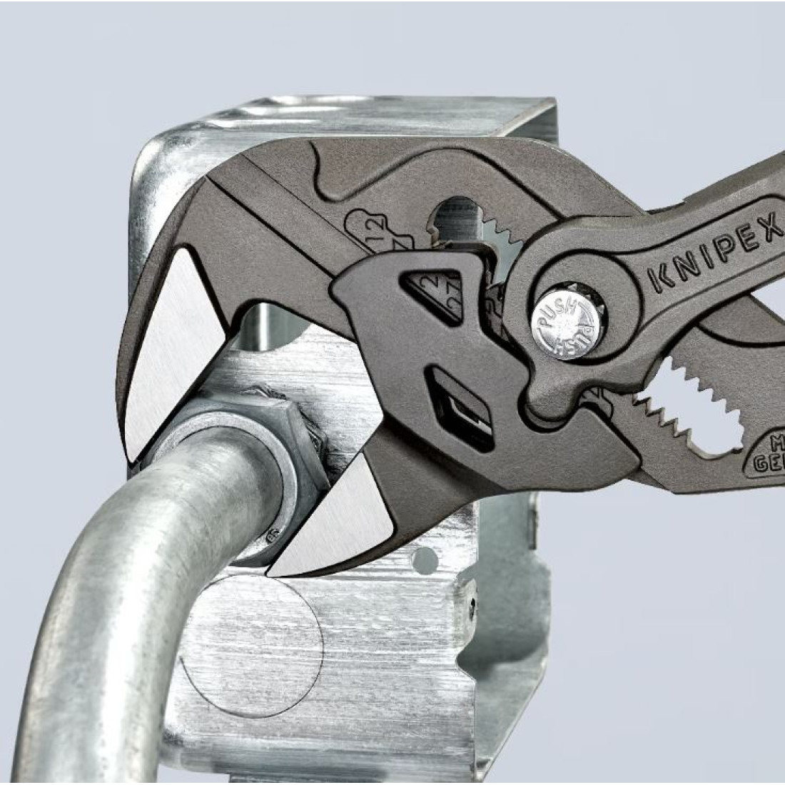 Replaces the need for sets of metric and imperial spanners Smooth jaws for damage free installation of plated fittings – working directly on chrome! Fast adjustment by pushing a button directly on the workpiece Great for gripping, holding, pressing and bending workpieces High lever transmission for strong gripping power Zero backlash jaw pressure prevents damage to edges of sensitive components Parallel jaws give a more solid grip; its design allows flexible adjustment of all widths up to the specified maximum size Reliable catching of the hinge bolt: no unintentional shifting The ratchet type principle allows quick and easy tightening and release of all bolted connections With scaling for presetting the width apart from the workpiece