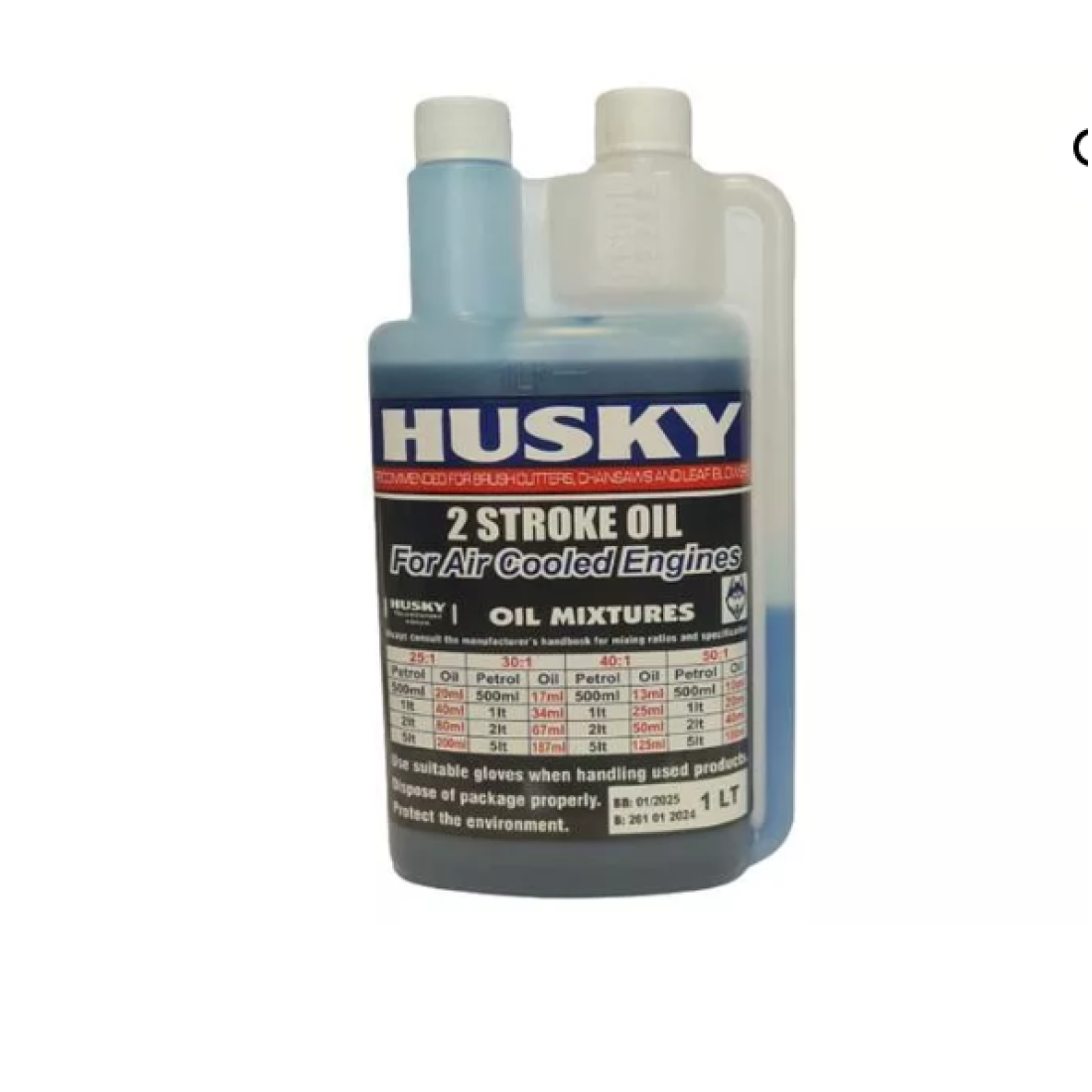 Husky 2-Stroke Oil is a synthetic lubricant formulated for use in all 2-cycle petrol engines. The 1 L dosage bottle includes clear mix markings for accurate blending from 25 : 1 to 50 : 1. Suitable for chainsaws, brush cutters, blowers, trimmers, and similar power tools, it provides effective lubrication and cleaner combustion for smoother performance and longer engine life.