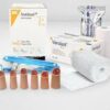 Types of bandages include roller, triangular, four-tailed, many-tailed (Scultetus), quadrangular, elastic (elastic knit, rubber, synthetic, or combinations of these), adhesive, elastic adhesive, newer cohesive bandages under various proprietary names, impregnated bandages (plaster of Paris, waterglass [silica], starch)