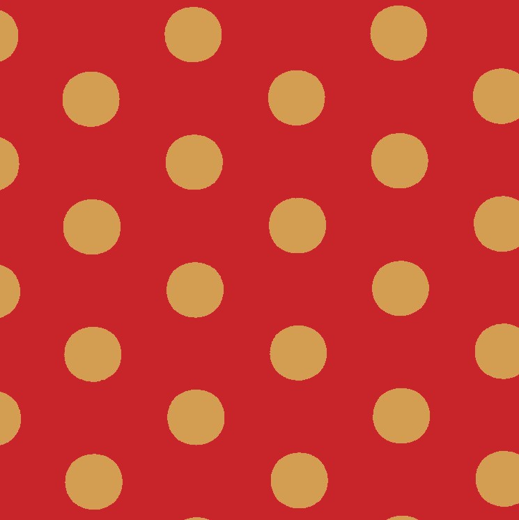 Large gold dot on red, 50cm x 50m rolls