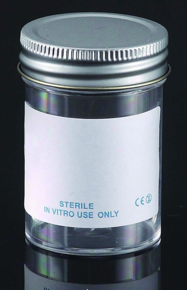 LLG Sample Containers 60 mL, PS with Metal Flowed Sterile Seal, Inert Liner Cap, Pack of 60