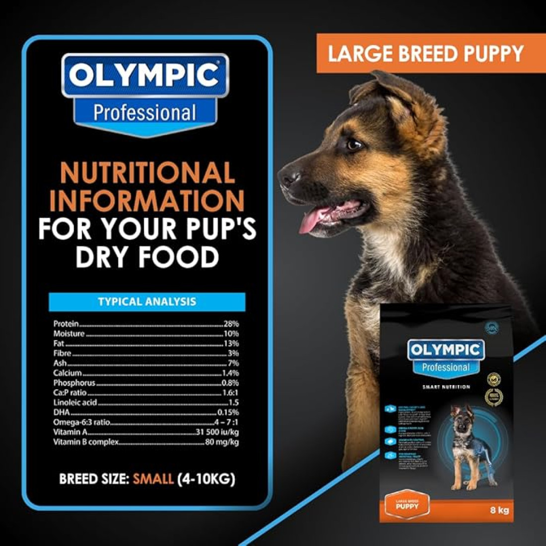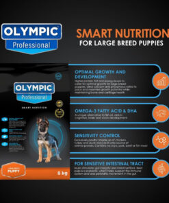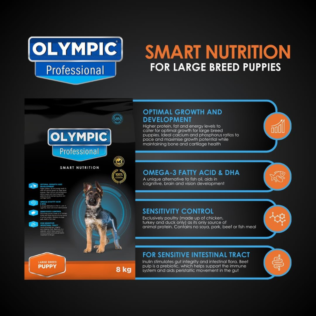 Precious pups need higher protein, fat and energy levels for optimal growth and development. OLYMPIC® PROFESSIONAL PUPPY offers just that, with the added peace of mind of gastrointestinal sensitivity control. OLYMPIC® PROFESSIONAL PUPPY is the smart choice for small to medium-sized dogs.